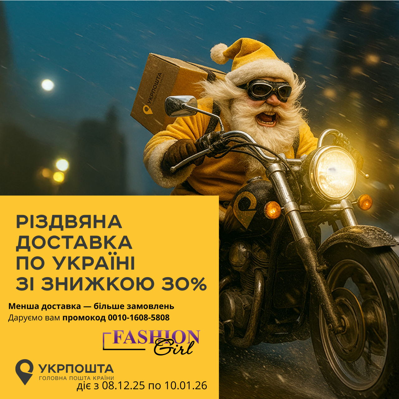 Промокод на знижку доставки від Укрпошти та Fashion girl.